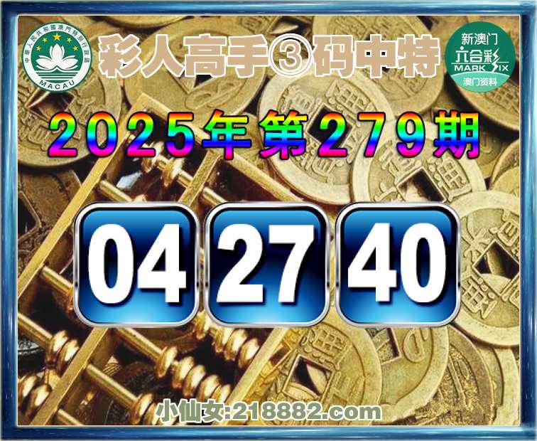 279期:《彩人高手》 🎉③码中特🎉【04.27.40】开:27